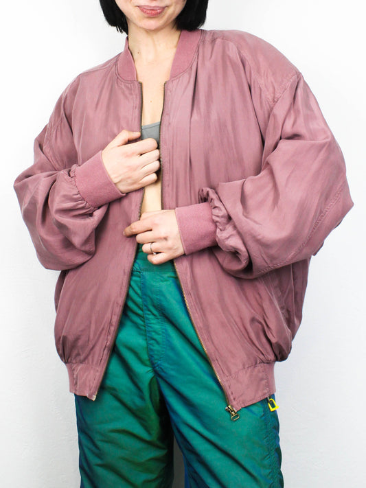 Пудровий шовковий бомбер на блискавціПудровий шовковий бомбер на блискавці