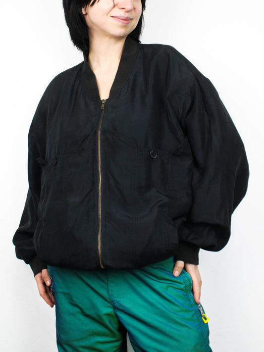 Чорний шовковий бомбер GenerationЧорний шовковий бомбер Generation