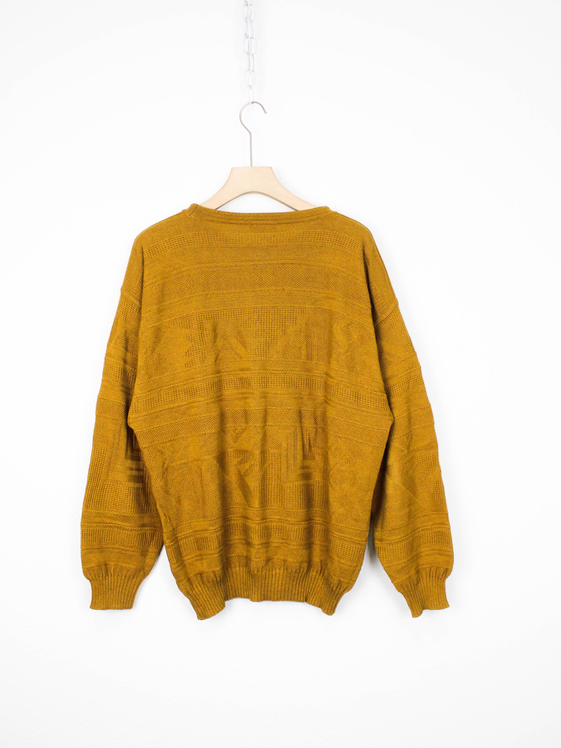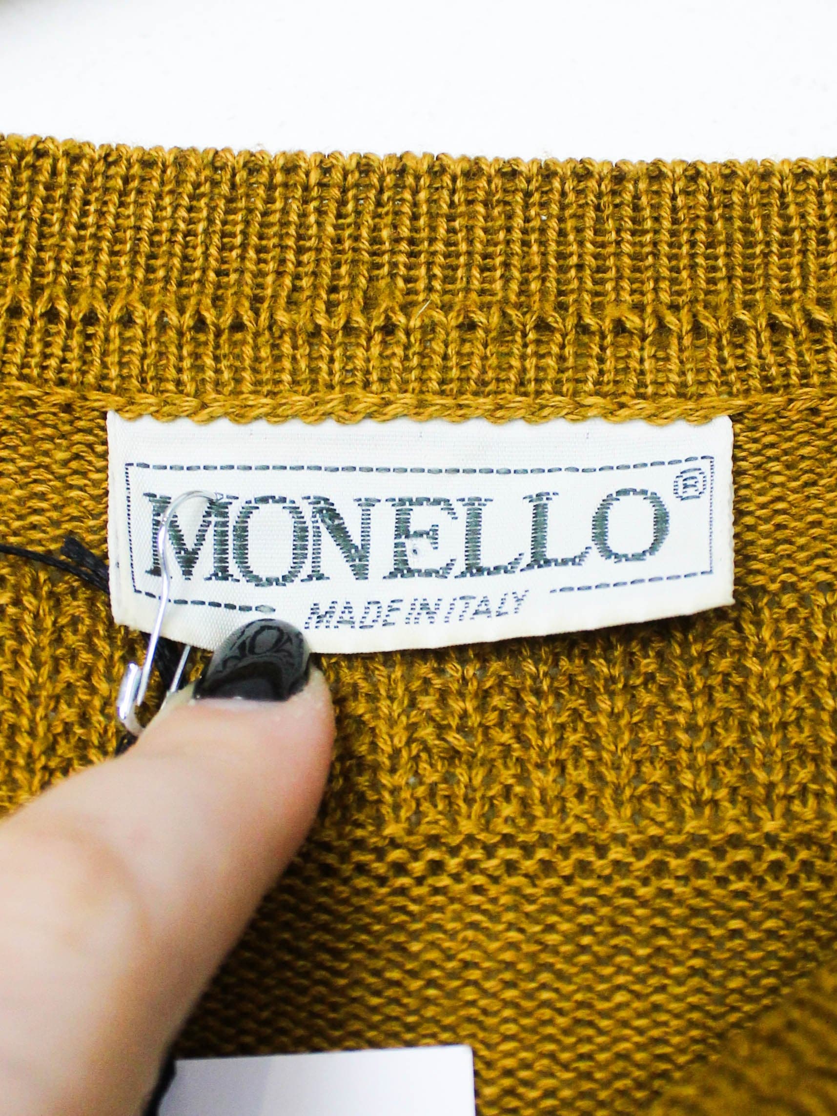 глибокий гірчичний светр monello — справжній італійський настрій для осені. щільна м’яка пряжа (бавовна з акрилом) приємно тримає форму, не кусається й ідеально лягає по фігурі. унісекс фасон з еластичними манжетами, прямим силуетом та красивим відтінком, який виглядає дуже стильно на контрасті з джинсами, шкірою чи спокійними базовими кольорами. виготовлено в італії, стан бездоганний — без потертостей і дефектів. гарний вибір для тих, хто цінує якісний архівний трикотаж.